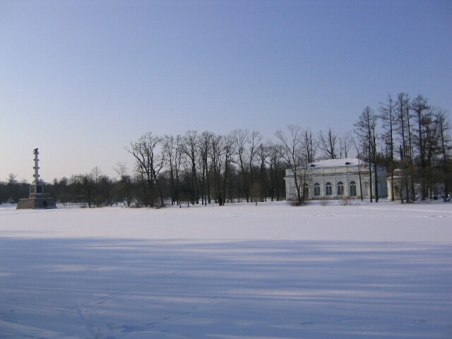Hig stands respectfully by Catherine The Great's dog mausoleum